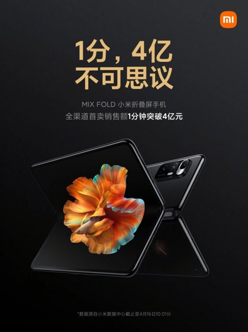 Первую партию Mi Mix Fold в Поднебесной распродали всего за одну минуту. В результате компания получила доход в 400 миллионов юаней, а это более $61 миллиона.