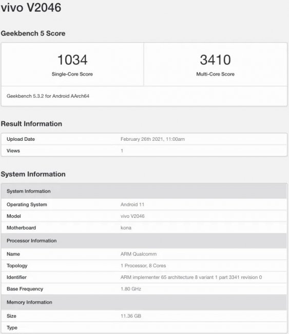 Глобальный вариант X60 Pro также был замечен в бенчмарке Geekbench с чипом «kona». Под этим названием также скрывается Snapdragon 870. Кроме того, подтверждены 12 ГБ оперативной памяти и Android 11.