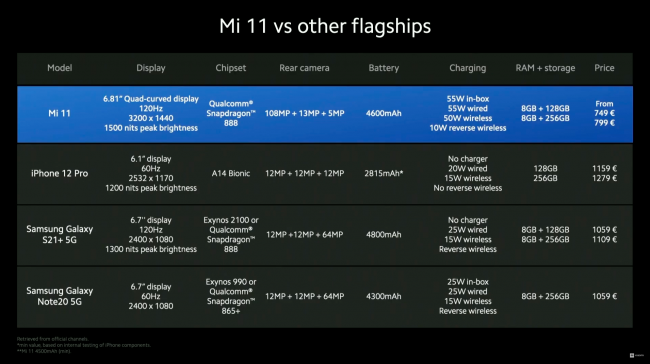 - Xiaomi Mi 11 8/128 ГБ — 749 евро (в Китае 508 евро)