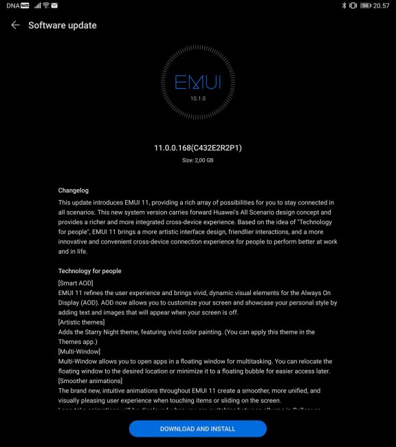 В новую версию ПО добавили большой список изменений, который включает в себя все основные особенности оболочки EMUI 11. Например, обновлённый режим Always-on Display (AOD), новый интерфейс и анимацию, синхронизацию системных звуков и вибрации, анимированные значки, функцию Smart Multi-Window, которая позволяет сворачивать приложения в окна и скрывать их в специальном боковом меню, новые фирменные приложения и многое другое.