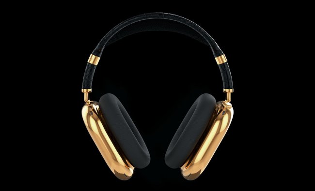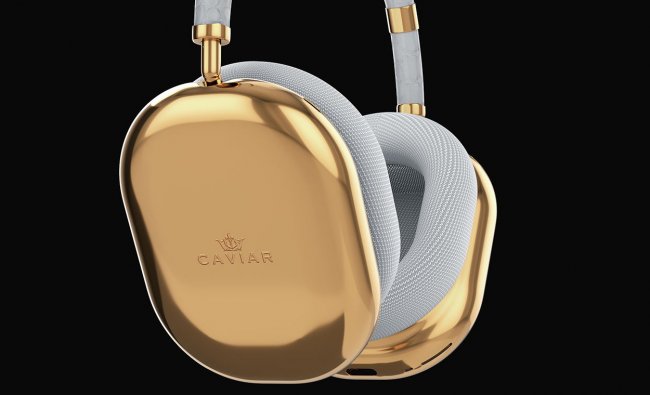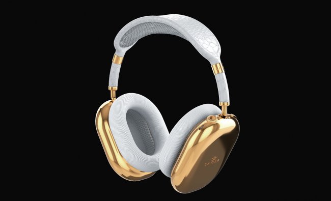 Следующая новинка — полноразмерные наушники AirPods Max с чашечками из золота 750-й пробы и оголовьем из крокодиловой кожи. На выбор есть черная и белая версии.
