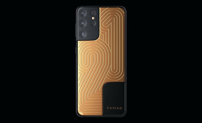 А неанонсированный флагман Samsung Galaxy S21 (точнее, его золотая версия от Caviar) получил корпус из прочного PVD-покрытия и заднюю панель из чистого золота. Узор на крышке вырисовывается в цифру 21.