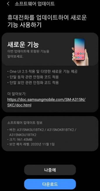 Обновление вышло для Galaxy A31 и Galaxy M51. В первом случае прошивка получила номер сборки A315NKSU1BTK2, а во втором — M515FXXU1BTK4. В обеих системах установлен ноябрьский патч безопасности. Кроме него разработчики также добавили в ПО основные нововведения One UI 2.5, а именно: улучшенную фирменную клавиатуру, обновлённое приложение камеры, стикеры Bitmoji для режима Always-on Display, поддержку фирменных жестов навигации Google в сторонних лаунчерах и многое другое. Естественно, не обошлось без исправлений ошибок.