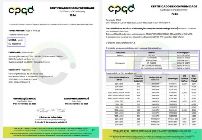 Документация на сайте CPQD раскрывает некоторые подробности о Galaxy A02 с обозначением модели SM-A025M/DS. В частности, указан аккумулятор HQ-50S с типичной емкостью 5000 мАч и номинальной емкостью 4800 мАч.