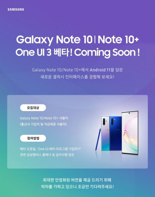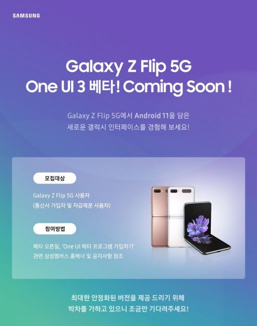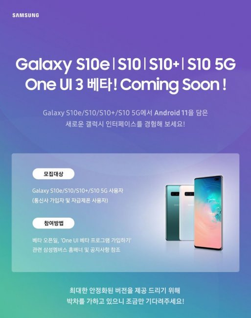 Корейский производитель анонсировал программу тестирования системы для складных устройств Galaxy Z Fold 2 и Galaxy Z Flip 5G, а также для прошлогодних флагманов Galaxy S10e, Galaxy S10, Galaxy S10+, Galaxy S10 5G, Galaxy Note 10 и Galaxy Note 10+. Согласно официальному форуму, прошивку выпустят в ближайшие недели. Сперва система будет доступна в Южной Корее, а потом её смогут протестировать также пользователи других стран.