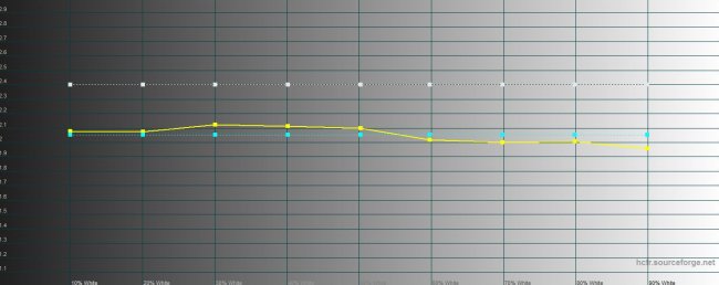 Для тех, кто глубже интересуется возможностями экранов смартфонов, редакция gg делает их замеры колориметром. У нас есть специальная инструкция, облегчающая толкование этих технических премудростей относительно простым для такого непростого вопроса способом. Мы делаем измерения в двух основных режимах работы: с естественными и насыщенными цветами. В обоих случаях экран имеет завышенную цветовую температуру и более холодные (синие) цвета — именно для тех, кого это раздражает, можно включить фильтр синего цвета. Зато все графики демонстрируют стабильность показателей как в темных, так и светлых участках. То есть завышенная яркость (по моим личным ощущениям так действительно картинка выглядит на экране лучше, предположу, что исследования Samsung в этой области показывают, что большинство пользователей такие же как я) равномерно завышена всегда. И это скорее результаты такой заводской (и сознательной) калибровки, чем технологический недостаток.