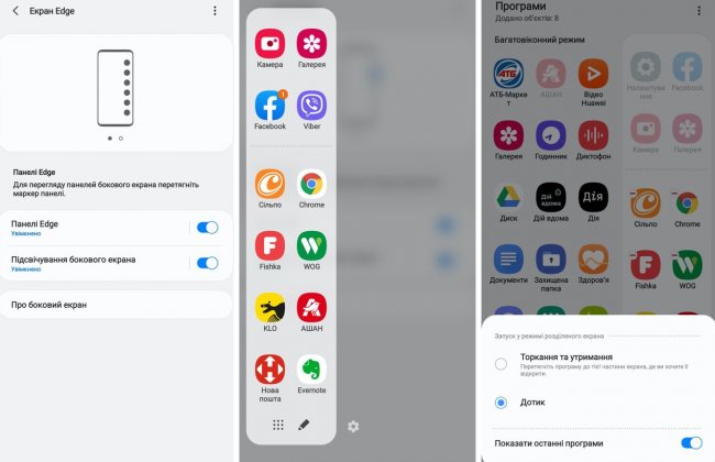 Зачем нужна панель Edge? Это просто находка для таких как я забываек, которые, стоя на кассе, лихорадочно листают огромный список установленных приложений, чтобы найти нужное — у меня это приложение Новой почты и приложения сетей магазинов и АЗС. Нет, конечно же, можно сделать под них всех отдельный рабочий стол, но на практике (по крайней мере в моем случае) это мало помогает в ситуации, когда ты не расслаблен, а стоишь и тыкаешь в экран пальцем в поисках нужного рабочего стола перед сочувствующим взглядом кассира, что еще больше усугубляет ситуацию (осообенно, если за тобой стоит очередь). А так я всегда знаю, что нужно в любой части меню или на любом рабочем столе просто сдвинуть пальцем панель Edge и вуаля!
