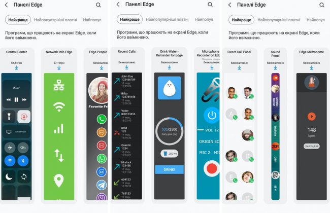 В магазине приложений Samsung можно найти дополнительные панели, созданные независимыми разработчиками. И, кстати, далеко не все они требуют денег, часть бесплатны. Мне лично нравится сама идея сделать виджет со списком звонков. Звонки — это реальная беда современных смартфонов, во времена кнопочных телефонов нужно было разблокировать телефон не глядя на него, буквально наощупь и дважды нажать на кнопку вызова, чтобы набрать пропущенный или последний набранный звонок. Со смартфонами так просто не получается, поэтому кто-то наверняка будет в востороге от идеи такого виджета. Или вот тот же метроном — понятно, что не все из нас музыканты (или кому там еще нужен сегодня метроном), но здорово, что есть и такие штуки.