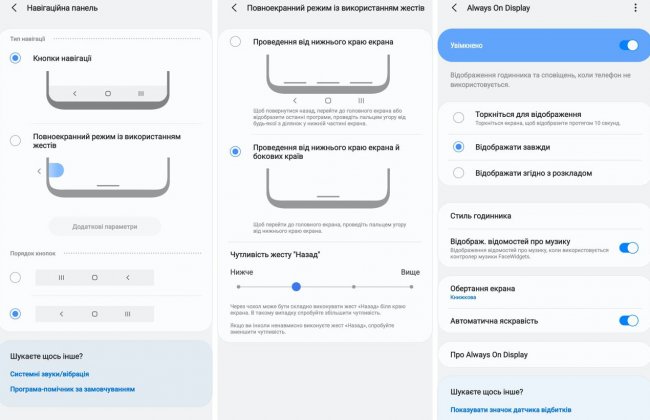 Мир переходит к безрамочным дисплеям, где уже не нужны функциональные кнопки «возврата назад» и вызова списка запущенных приложений — наследия первых версий Android, но для консерваторов можно оставить виртуальные кнопки (заодно выбрав как вам удобнее разместить кнопку возврата в предыдущее меню — слевав или справа) или вообще отключить их, освободив место на экране под полезную информацию, и освоив простое управление жестами. Ну, и не стоит забывать про функцию Always On, которая реально изменяет пользовательский опыт и вызывает восторг у всех, кто сталкивается с ней впервые (пусть наши читатели и не из таких).