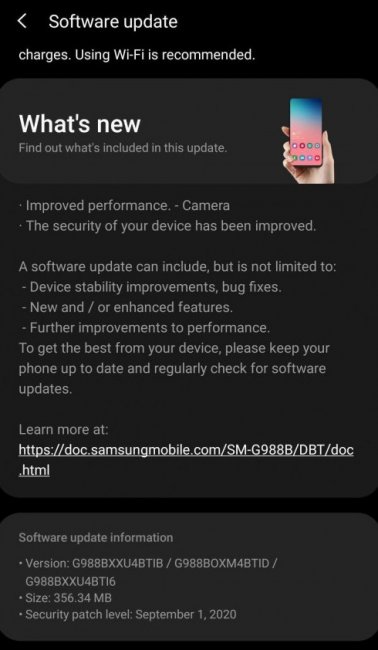 Компания Samsung выпустила для флагманской линейки смартфонов Galaxy S20 новое обновление прошивки. Что известно Системы вышла с номером сборки G98xxXXU4BTIB и весит 356 МБ. Согласно официальному списку изменений, в программном обеспечении улучшили безопасность устройств. Кроме этого, разработчики