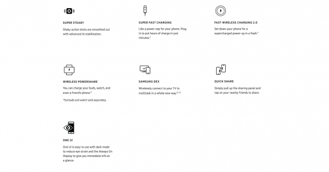Итак, как и говорилось в предыдущих утечках, смартфон выйдет на рынок в шести расцветках: Cloud Navy, Cloud White, Cloud Pink, Cloud Red, Cloud Blue и Cloud Gold. Новинку оснастят корпусом с защитой от воды IP68 и 6.5-дюймовым Super AMOLED Infinity-O дисплеем с разрешением FHD+ и частотой обновления картинки 120 Гц. Рендеры подтвердили, что аппарат будет работать на процессоре Snapdragon 865 со встроенным 5G-модемом. Ходят слухи, что компания выпустит ещё 4G-версию устройства с фирменным чипом Exynos 990.