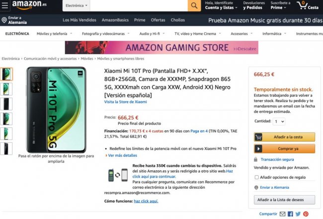 Испанское подразделение Amazon раскрыло подробные характеристики, цены и пресс-рендеры новых флагманских смартфонов Xiaomi Mi 10T и Xiaomi Mi 10T Pro.