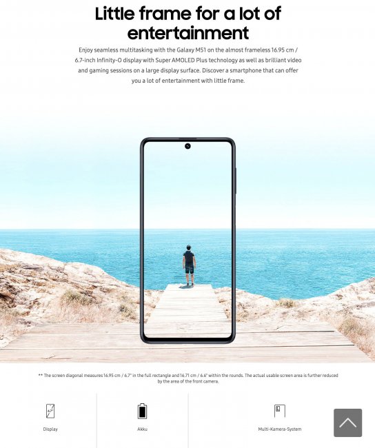 Без громких анонсов и презентаций смартфон Samsung Galaxy M51 появился на официальном сайте Samsung в Германии. Более того, компания уже принимает предзаказы на новинку.