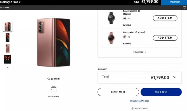 Только вчера Samsung объявила о проведении мероприятия Galaxy Unpacked Part 2, которое пройдет 1 сентября и будет посвящено складному смартфону Galaxy Z Fold 2. А теперь новинка появилась на официальном сайте Samsung в Великобритании.