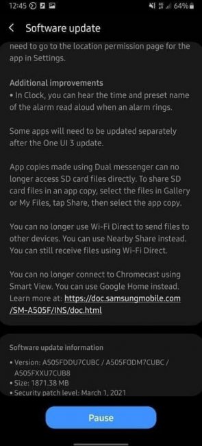 Прошивку с номером сборки A505FDDU7CUBC уже начали получать пользователи по всему миру. Проверить наличие обновления можно в настройках смартфона.
