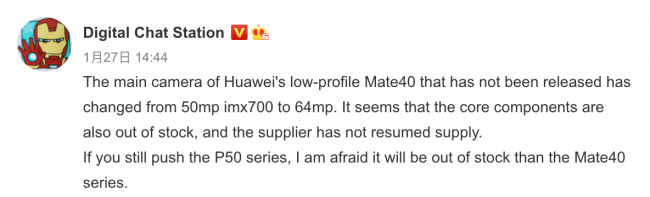Слух: Huawei Mate 40E получит основной сенсор Omnivision OV64A на 64 МП, вместо датчика Sony IMX700 на 50 МП - «Смартфоны»