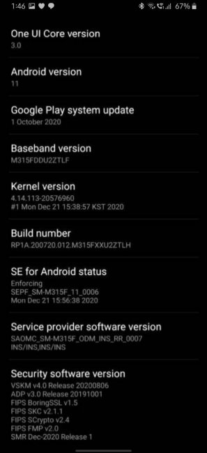 Тестовая прошивка получила номер сборки M315FDDU2ZTLF и основана на свежей операционной системе Android 11. В ПО добавили все основные нововведения оболочки, а также патч безопасности за декабрь.