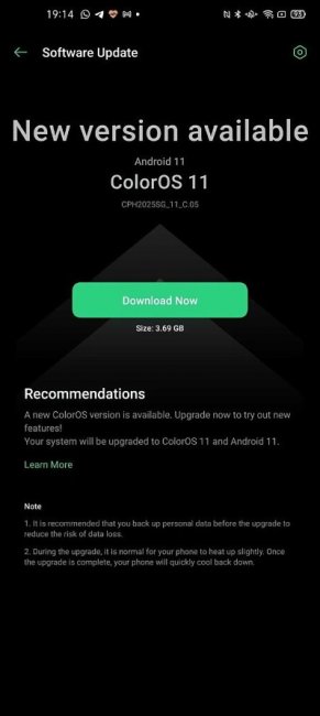 Обновление получило номер сборки CPH2025SG_11_C.05 и весит больше 3 ГБ. Из новшеств, в прошивку добавили свежий патч безопасности, а также новую фирменную оболочку Color OS 11. Она получила обновлённый интерфейс, возможность настраивать и создавать свои заставки Always-On Display, тёмную тему с тремя оттенками чёрного цвета, а также функции Three-Finger Translate и Flexdrop. Первая позволяет с помощью трёх пальцев создавать скриншот и сразу же отправлять его в Google Lens для перевода текста, а вторая — улучшает многозадачность. Ещё в обновлении стоит отметить новый режим энергосбережения Super Power Saving Mode. Благодаря ему можно выбрать шесть самых важных приложений, которые будут работать при низкой зарядке устройства.