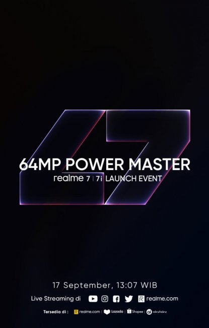Новинку назовут Realme 7i. Устройство, согласно официальному постеру, представят в Индонезии 17 сентября. Это будет самый дешёвый смартфон линейки.