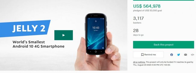 Около месяца назад стартап Unihertz представил новый миниатюрный смартфон Jelly 2. Производитель уверяет, что это самый маленький в мире 4G-смартфон с Android 10. На Kickstarter запущена кампания по сбору средств, и Jelly 2 сразу же стал хитом продаж.