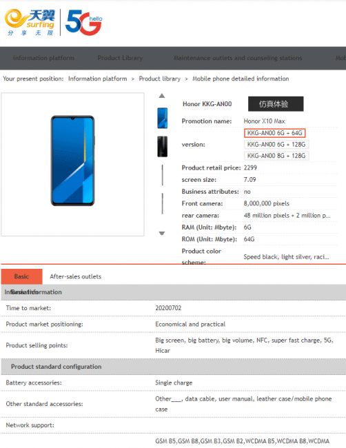 За два дня до презентации смартфона Honor X10 Max, китайский оператор China Telecom подтвердил характеристики и раскрыл цены новинки.