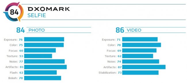 Как оказалось, с селфи-камерой у смартфона не все так гладко. Она получила 84 балла: 84 за фото и 86 за видео, и в этом случае до пятерки лидеров с таким результатом очень далеко.