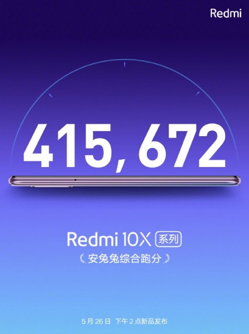 Аппарат дебютирует в Китае 26 мая. То есть, в следующий вторник. Смартфон станет первым устройством на рынке, который оснастят новым процессором MediaTek Dimensity 820. Чип построен по 7-нанометровому техпроцессу и может похвастаться встроенным 5G-модемом, а также восемью ядрами, четыре из которых (Cortex-A76) работают с частотой 2.6 ГГц. Благодаря этому процессору, Redmi 10X будет набирать в AnTuTu больше 415 тысяч баллов.