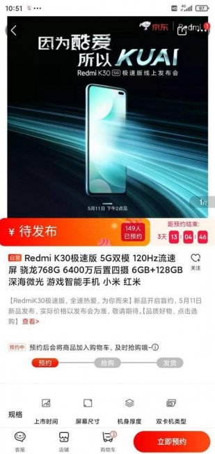 Аппарат, согласно официальному постеру, выпустят 11 мая. То есть на следующей неделе. Новинка получит название Redmi K30 5G Speed Edition. Её представят в сотрудничестве с китайской площадкой JD.