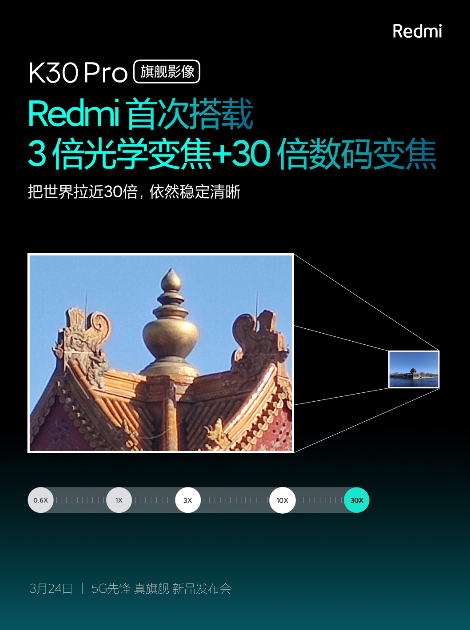 Несмотря на то, что до анонса Redmi K30 Pro остаются считанные дни, компания Xiaomi продолжает раскрывать особенности новинки. Что на этот раз Производитель опубликовал постер в социальной сети Weibo, согласно которому специальную версию флагман K30 Pro Zoom Edition оснастят квадро-камерой с