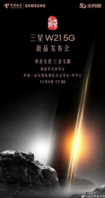 Компания опубликовала постер, согласно которому новинку представят в Китае 4 ноября. Аппарат выпустят вместе с оператором China Telecom. Новинка должна стать слегка изменённой версией складного смартфона Galaxy Z Fold 2. Устройство получит ребристую заднюю панель, а также золотую расцветку корпуса.