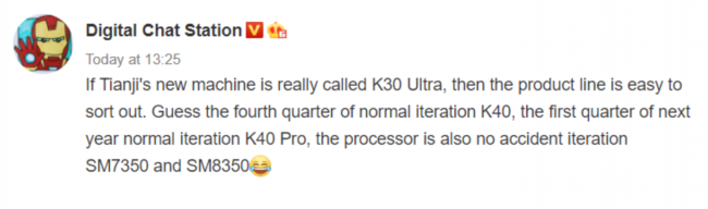 По словам китайского инсайдера Digital Chat Station, Redmi K40 должны представить в четвёртом квартале этого года, а вот Pro-версию устройства ждать в ближайшее время не стоит. Если всё пойдёт по плану, то флагман покажут в начале 2021 года.