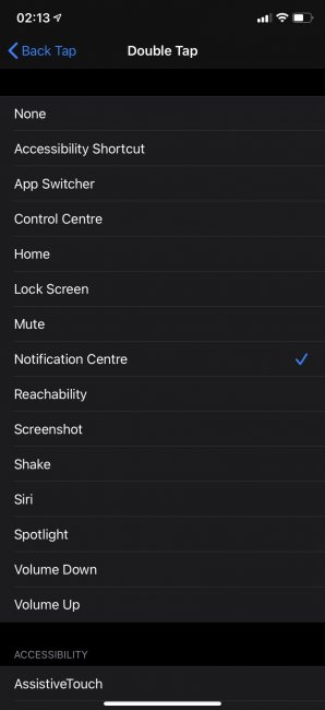 В настройках можно выбрать, что именно будет запускать постукивание: регулировка громкости, запуск центра уведомлений, эмуляция кнопки Home, вызов Siri, скриншот, включение фонарика и т. д.
