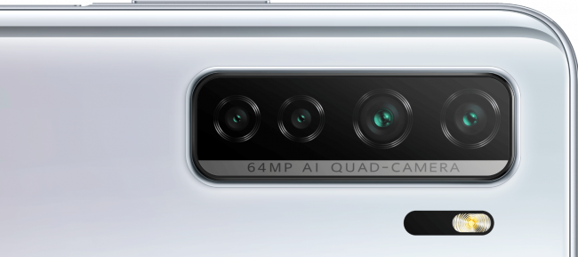Основная камера состоит из четырех модулей: 64 Мп главный датчик (f/1.8), 8 Мп широкоугольная камера с углом обзора 120 градусов (f/2.4), 2 Мп макро и 2 Мп датчик глубины.