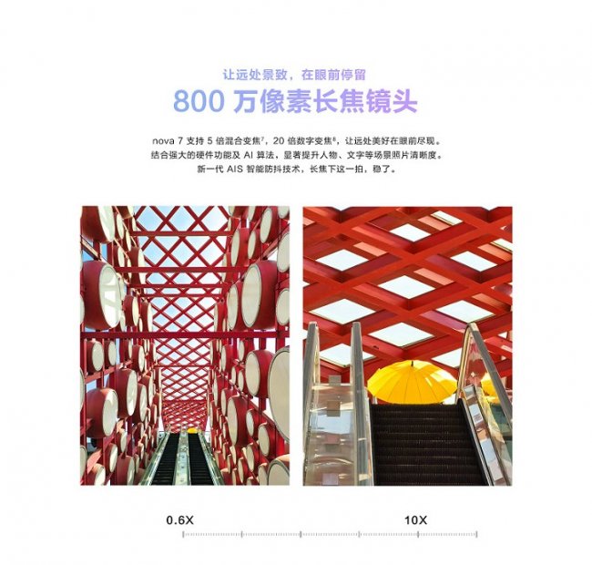 Производитель наградил гаджет 64-мегапиксельной основной камеру, 8 МП объективом со стабилизацией и 50-кратным цифровым зумом, ещё одним 8-мегапиксельным объективом и сенсором на 2 МП. На передней панели разместились датчики на 32 МП и 8 МП. Аккумулятор такого же объёма, как у Nova 7 — 4000 мАч с поддержкой быстрой зарядки 40 Вт.