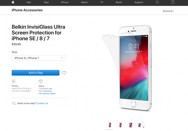 На американском сайт Apple Store появилось в продаже защитное стекло Belkin InvisiGlass Ultra, которое рассекретило название нового бюджетного смартфона компании и это не iPhone 9 или iPhone SE 2.