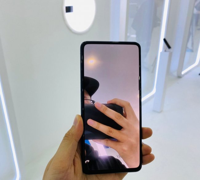 На корпусе смартфона нет вырезов и отверстий, а вот круг камеры все-таки заметен на экране. Надеемся, производитель доработает технологию, и к моменту выпуска коммерческого устройства фронталка будет не так заметна.