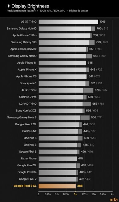 Что говорить — даже у Pixel 2 XL экран поярче.