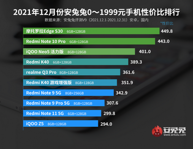 Разработчики AnTuTu опубликовали традиционный список лучших смартфонов на Android по соотношению производительность / цена. На сей раз по итогам последнего месяца ушедшего года.