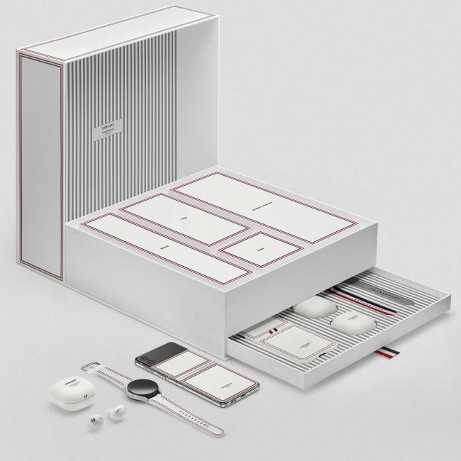 Фактически продаваться будут лишь складные смартфоны Samsung Galaxy Z Flip 3 и Z Fold 3 Thom Browne Edition. Но они получат фирменные аксессуары в той же стилистике: беспроводные наушники Galaxy Buds 2, смарт-часы Galaxy Watch 4, даже стилусы S Pen Fold Edition и S Pen Pro и соответствующие по цвету подставки для беспроводной зарядки.