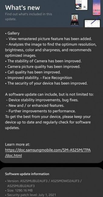 Прошивка вышла с номерами сборок A525MUBU2AUF3 и A725FXXU2AUF3 соответственно. В новое ПО установили актуальный патч безопасности Google, который закрывает некоторые уязвимости системы. Кроме этого, разработчики исправили ошибки, а также улучшили работу камеры.