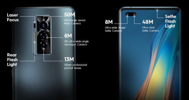 Главная особенность устройства — камера. Основная получила три датчика. Главный сенсор на 50 МП с размером 1/1.3” и светосилой f/1.85. Далее идёт телеобъектив на 13 МП с 50-миллиметровой линзой для портретных фотографий и поддержкой оптического приближения 2X. Третий датчик — ширик на 8 МП с углом охвата 120 градусов. Сенсоры работают в паре с LED-вспышкой и лазерным автофокусом.
