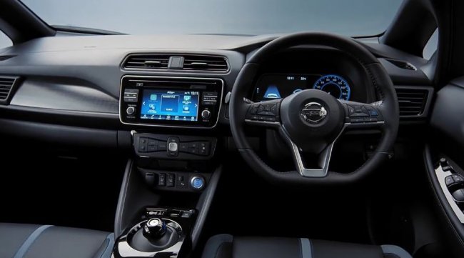 Интерьер обновленного Leaf Nissan также освежил. Как заявляет производитель, салон электрокара получил более качественные материалы, улучшенные сборку и отделку, которые «облагораживают жизнь на борту». Внутри сиденья покрыты ярко-синими строчками, те же элементы обрамляют руль и приборную панель. С увеличением батареи вместительность салона не пострадала. Напротив, багажник получил еще больше свободного пространства, вместительность которого теперь составляет 435 литров.
