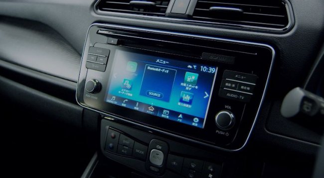 Центральная консоль включает 7-дюймовый сенсорный экран, который выводит технические сведения, а также служит частью мультимедийной системы, обладающей возможностью интеграции с Apple CarPlay и Android Auto. В рулевое колесо встроен дополнительный пульт, позволяющий управлять рядом функций, не отрываясь от него, а приложение Nissan Connect снабдит водителя информацией о ближайших бесплатных электрозаправках.