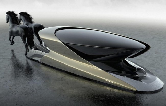 Дизайнеры Camal представили необычный проект – электромобиль будущего, который использует лошадей в качестве альтернативной силовой установки. Модель гибридного автомобиля-экипажа получила название Viva.