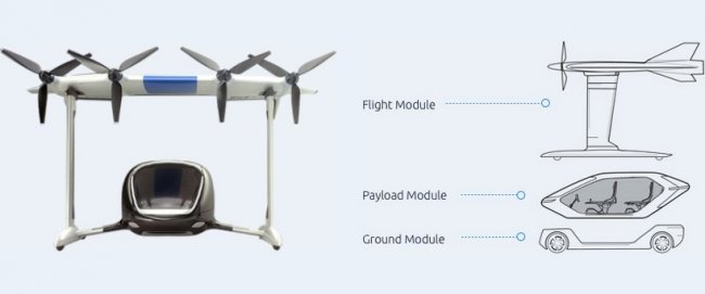 VTOL получит крыло, в передней части которого будут установлены четыре пропеллера. Грузовой или пассажирский модуль будет закрепляться между хвостовыми балками. Помимо воздушной, предусмотрена также наземная платформа, ее стоимость вместе пассажирской капсулой составит около ста тысяч долларов.