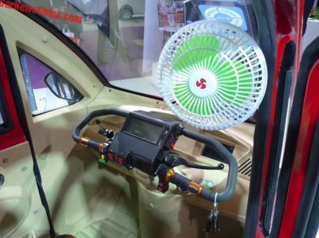 Несмотря на свои миниатюрные размеры, электромобильчик имеет посадочную формулу 1+2 и, по заявлениям разработчиков, вмещает 3-х человек (3-х китайских человек). Для максимального комфорта салон электрокара оснастили вентилятором, небольшим дисплеем для технической информации, радио и MP4-плеером.