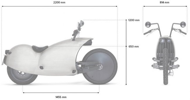 Австрийский электромотоцикл комплектуется батареей на 8,3 кВт*ч (также доступны модели с более емким аккумулятором на 12,7 кВт*ч) обеспечивающей дальность пробега до 300 км и заряжающейся за 2 с небольшим часа. Выделяют его также полипропиленовый корпус и система рулевого управления без приборной панели. Все данные выводятся на дисплеи, вмонтированные в зеркала заднего вида. Вращение ручки газа в направлении от водителя включает рекуперативное торможение. Чем сильнее вращаешь — тем скорее сбрасывает скорость машина. Есть и задний ход для помощи при парковке.