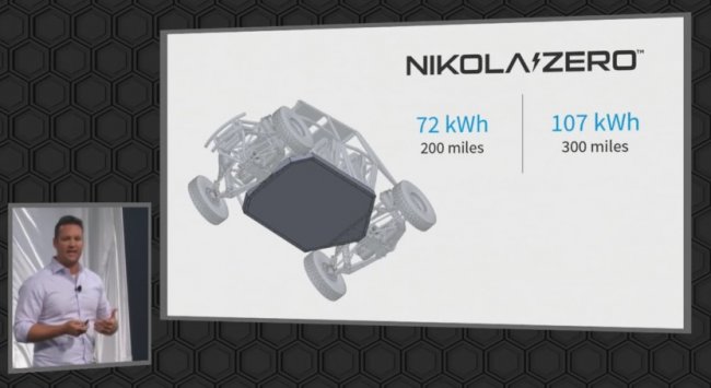 На презентации также была представлена фура Nikola Two с уменьшенной кабиной, но с такими же спецификациями привода, как у Nikola One. Кроме того, компанией был продемонстрирован легковой автомобиль Nikola Zero, представляющий собой электрический багги с тяговой батареей емкостью 107 кВт*ч и запасом хода более 300 миль (483 км), выход в продажу которого намечен уже на следующий год.