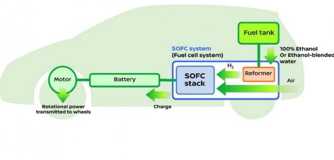 Компания Nissan начала разработку системы топливных элементов для электромобилей, которые могли бы работать на этаноле (основа любого алкогольного напитка). Новая технология получила название "е-Bio Fuel-Cell". Такая система впервые будет использоваться в транспортных средствах.