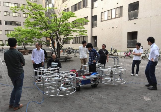 Молодые специалисты уже провели первый тестовый полет на базе начальной школы в городе Toyota. Уменьшенный прототип размерами 30 на 60 сантиметров успешно поднялся над землей на 3 метра и «провисел» в воздухе некоторое время. Несколько повторных тестов также показали удачные результаты.
